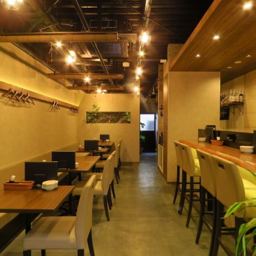 少人数から大人数まで柔軟に対応できるレイアウトが魅力の店内。女子会や飲み会はもちろん、プライベートな時間を楽しめる半個室、気軽に立ち寄れるカウンター席など多様な席種を完備。周囲を気にせず過ごせる配慮もされており、どんなシーンでも心地よく過ごせます。料理やお酒とともに、笑顔が集まる空間です。